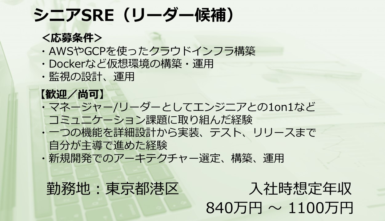 シニアSRE(リーダー候補)