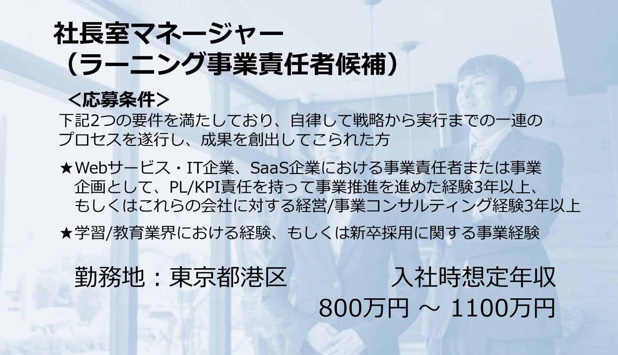 社長室マネージャー(ラーニング事業責任者候補)